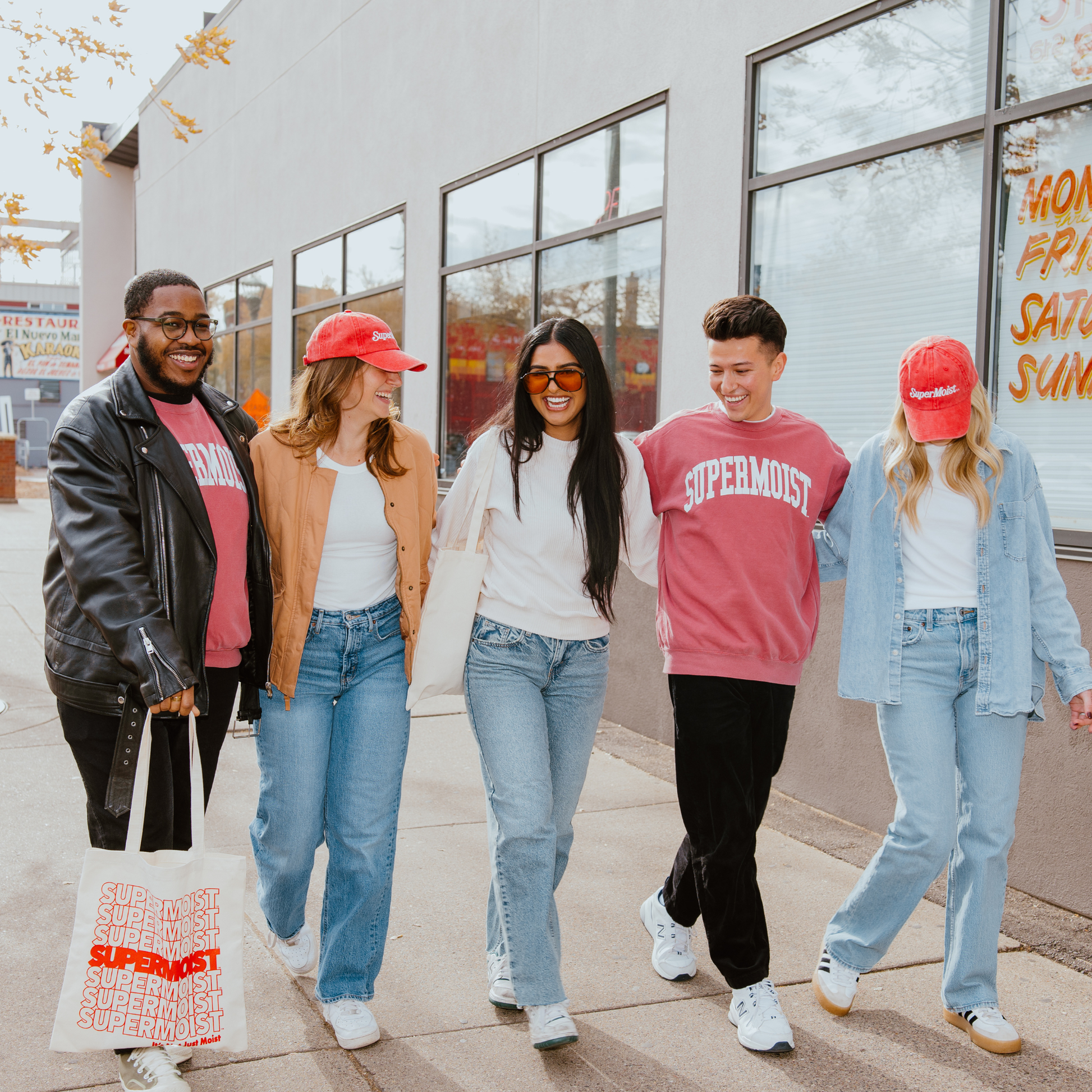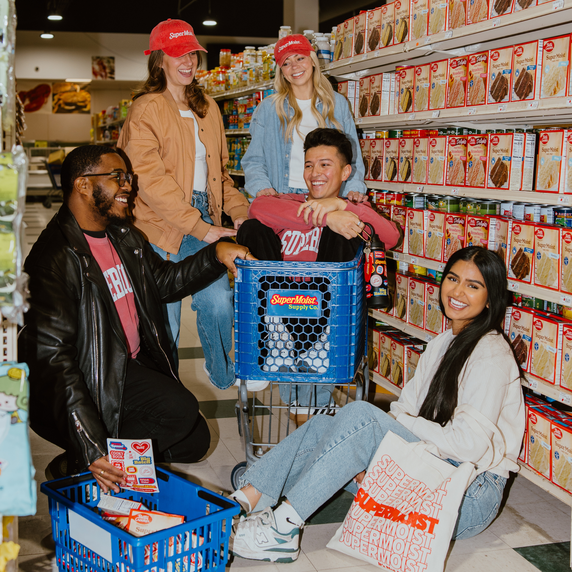 Super bundle includes SuperMoist™ Dad Cap, SuperMoist™ Motel Keychain, SuperMoist™ Canvas Tote, SuperMoist™ Varsity Sweatshirt, Betty Crocker™ Sticker Pack.